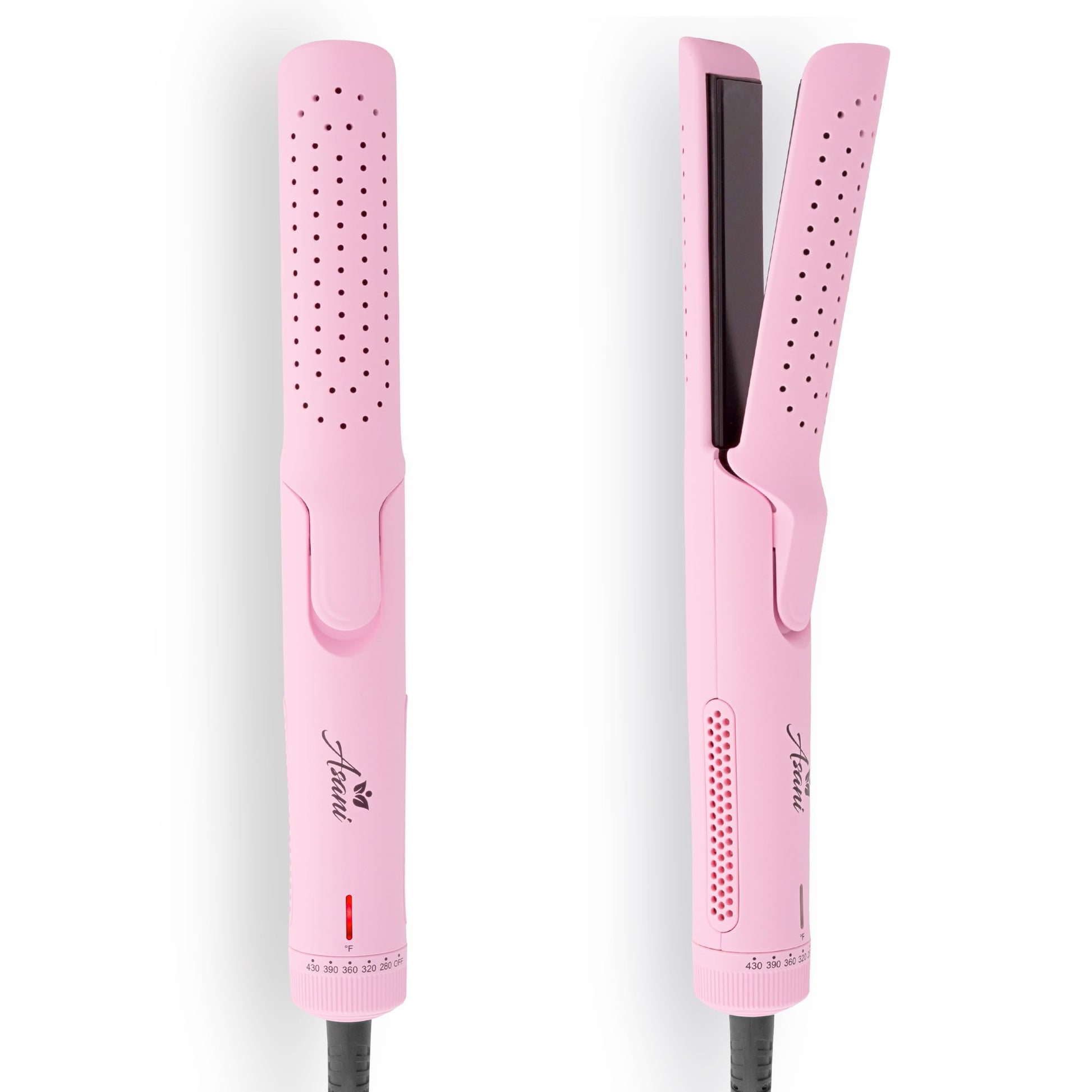 360° Airflow Styler - 2-in-1 Professional Curling Wand & Hair Straightener - Flat Iron Curler with Cooling Fan, Air Vents - Crimper Styling Tool for Volume & All-Day Curls - All Hair Types (Pink)