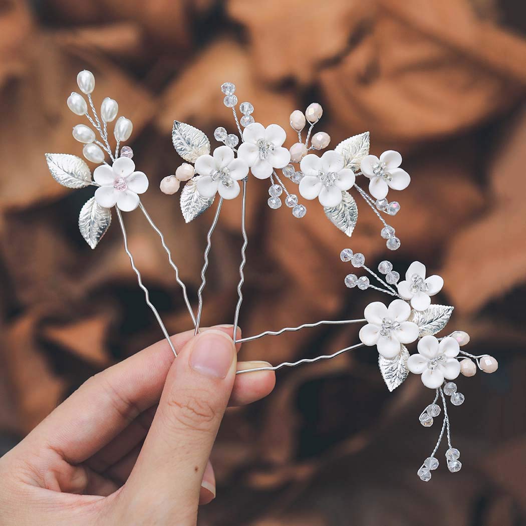 Casdre Flower Bridal Hair Pins Pearl Bride Wedding Hair Accessories Rhinestone Hair Piece for Women and Girls(Pack of 3) (A Silver)