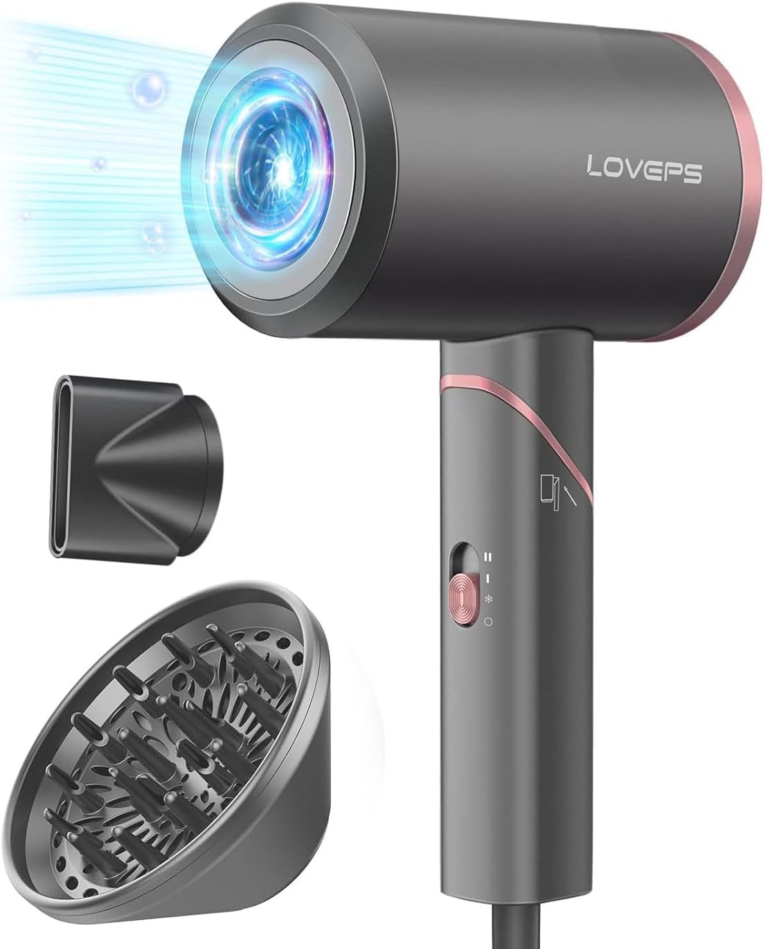 Hair Blow Dryer with Diffuser, 1800W Ionic Blow Dryer, Foldable Handle Travel Hair Dryer, Constant Temperature Hair Care Without Hair Damage, Rose Gold