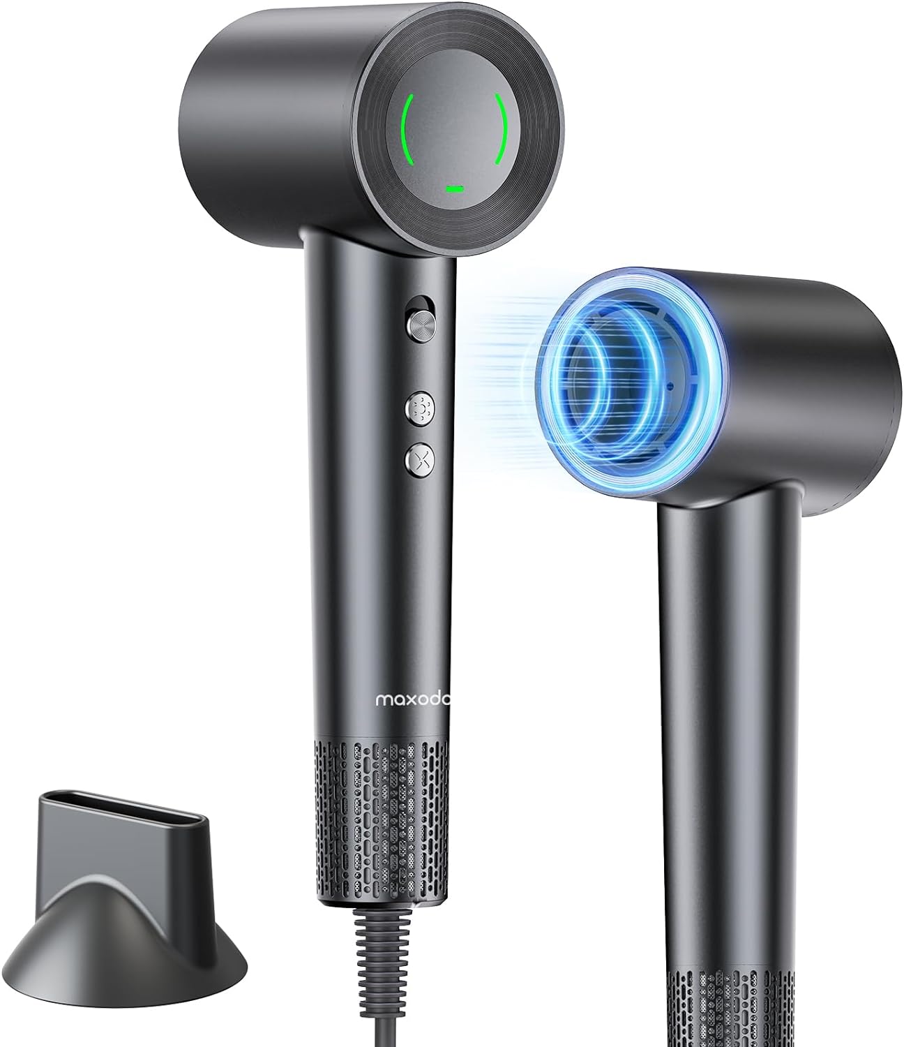 【Intelligent Heat and Air Control】: Hair blow dryer with the option of 4 intelligent heat control modes (hot/warm/cool/unique cool & hot circulating option), you can find the ideal setting for your hair without the worry of heat damage. The 3 airflow switch modes (high, medium, and low speed) and combined with a 360°rotating magnetic nozzle cater to diverse hairstyles and individual preferences.