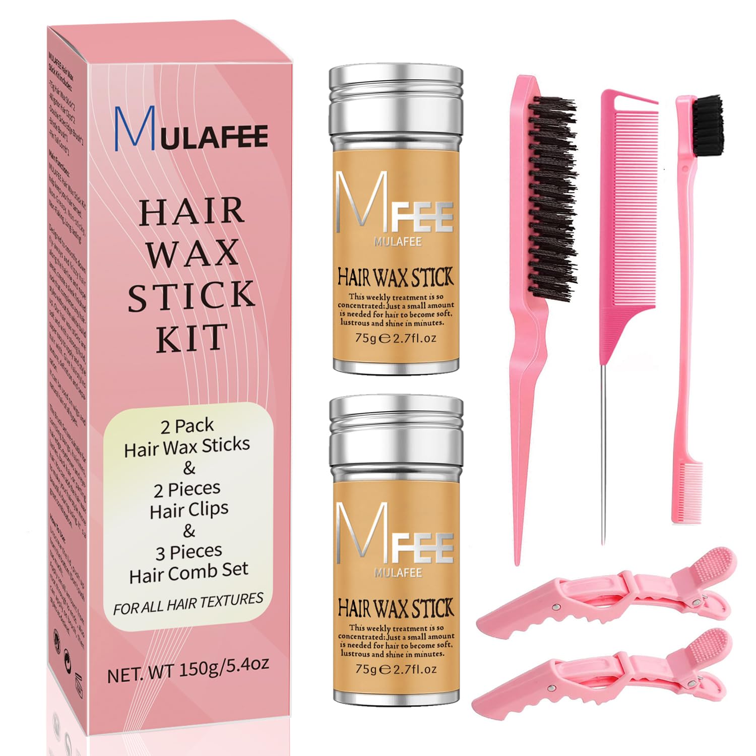 MULAFEE Hair Wax Stick Kit 7 Pcs, Wax Stick for Smooth Hair Wigs, Non-Greasy Styling Wax for Fly Away and Edge Frizz, Hair Slick Stick with Comb & Hair Clips Set